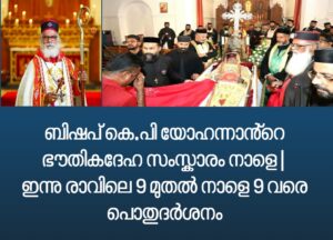 Next post ബിഷപ് കെ.പി യോഹന്നാൻ്റെ സംസ്കാരം നാളെ