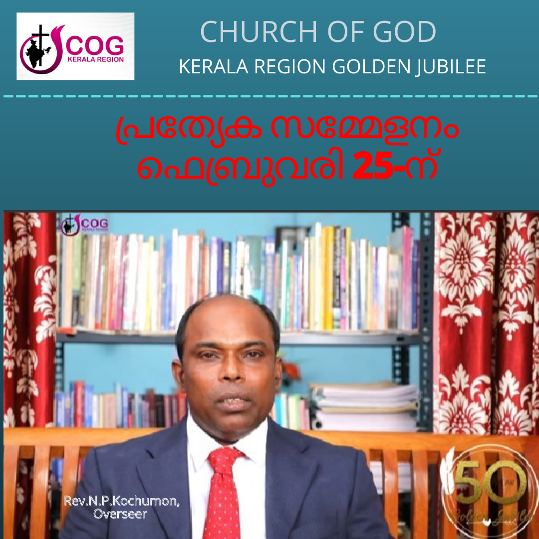 പാക്കിൽ/കോട്ടയം: ചർച്ച് ഓഫ് ഗോഡ് കേരള റീജിയൻ സുവർണ്ണ ജൂബിലി നിറവിൽ. 1972 ഫെബ്രുവരി 25-ന് ചർച്ച് ഓഫ് ഗോഡ് വേൾഡ് വിഷന്റെ അംഗീകാരത്തോടെ ആരംഭം കുറിച്ച സഭയുടെ കേരള റീജിയന് 2022 ആകുമ്പോൾ അര നൂറ്റാണ്ട് പൂർത്തിയാകും. ഒരു വർഷം നീണ്ടു നിൽക്കുന്ന ജുബിലി ആഘോഷങ്ങൾക്ക് തുടക്കം കുറിച്ചു കൊണ്ട് ഫെബ്രുവരി 25 വ്യാഴാഴ്ച 3 മണിക്ക് സഭയുടെ കൺവൻഷൻ സ്റ്റേഡിയം-പ്രത്യാശാ നഗറിൽ പ്രത്യേക സമ്മേളനം നടക്കും. വിവിധ സഭാ മേലദ്ധ്യക്ഷന്മാർ, കേന്ദ്ര-സംസ്ഥാന മന്ത്രിമാർ, സാമൂഹ്യ- രാഷ്ട്രീയ നേതാക്കൾ തുടങ്ങിയവർ സമ്മേളനത്തിൽ പങ്കെടുക്കുമെന്ന് സഭാ ഓവർസീയർ റവ. എൻ.പി. കൊച്ചുമോൻ അറിയിച്ചു.