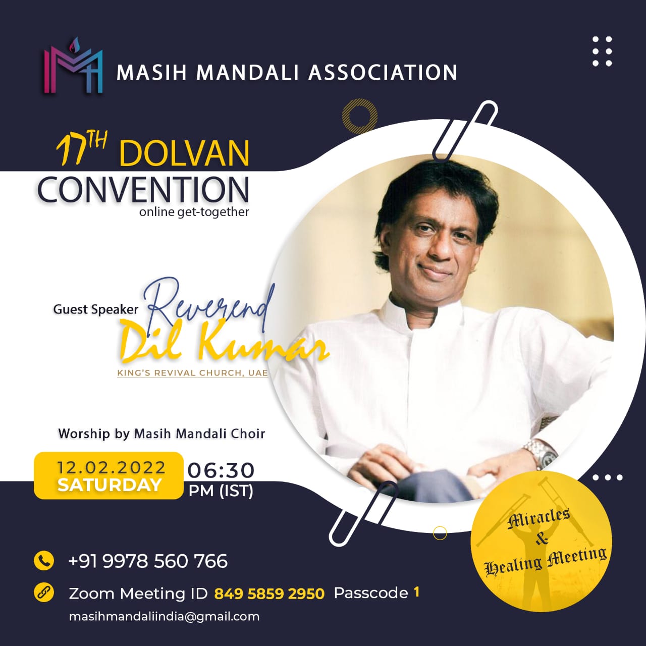 താപി/ഗുജറാത്ത്: മസിഹി മണ്ഡലി (ഫെല്ലോഷിപ്പ് ആശ്രം ചർച്ച് ഓഫ് ഇൻഡ്യ) യുടെ 17-ാമത് കൺവൻഷൻ (ഡോൾവൻ കൺവൻഷൻ) ഫെബ്രുവരി 12 ശനിയാഴ്‌ച വൈകിട്ട് 6.30 മുതൽ സൂം പ്ലാറ്റ്‌ഫോമിൽ നടത്തപ്പെടും. യു.എ.ഇ കിങ്‌സ് റിവൈവൽ ചർച്ച് സ്ഥാപകൻ റവ. ദിൽ കുമാർ ദൈവവചനം പ്രസംഗിക്കും. ലോകത്തിന്റെ വിവിധ ഇടങ്ങളിൽനിന്നും അനേകർ പങ്കെടുക്കുന്ന ഈ സമ്മേളനത്തിൽ മസിഹി മണ്ഡലി ക്വയർ ആരാധനക്ക് നേതൃത്വം നൽകും.എല്ലാ വർഷവും ഫെബ്രുവരി മാസത്തിൽ അഞ്ച് ദിനങ്ങൾ നീണ്ടുനിൽക്കുന്ന ഡോൾവൻ കൺവൻഷൻ ഇപ്പോഴത്തെ പ്രത്യേക സാഹചര്യം കണക്കാക്കിയാണ് ഈ വർഷം ഏകദിന സമ്മേളനമായി നടത്തുവാൻ തീരുമാനിച്ചിരിക്കുന്നത്. ഈ ആത്മീയ സംഗമത്തിലേക്ക് കർതൃനാമത്തിൽ ഏവരെയും സ്വാഗതം ചെയ്യുന്നു.