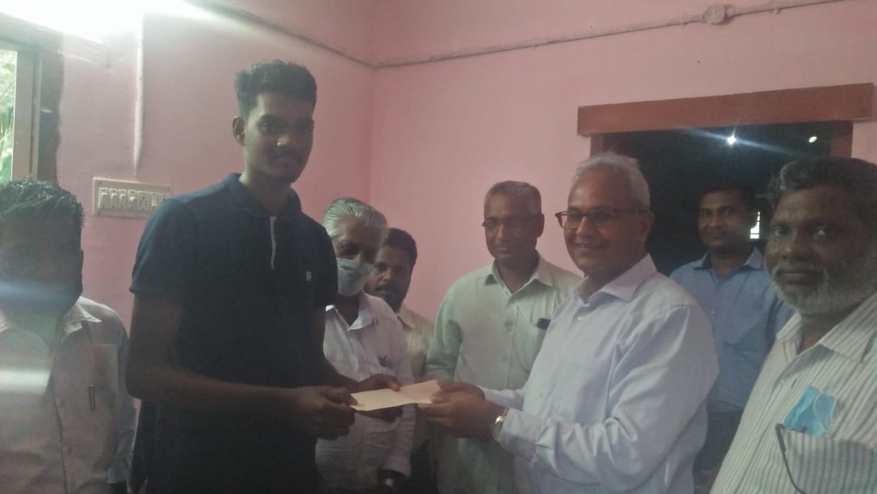 പാസ്റ്റർ പി.സി. ജേക്കബ് വിദ്യാഭ്യാസ ധനസഹായ വിതരണം നിർവഹിക്കുന്നു