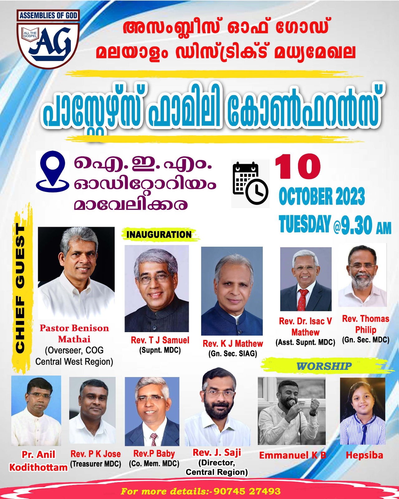 കൂടുതൽ വിവരങ്ങൾക്ക് : പാസ്റ്റർ ജെ.സജി- ഫോൺ: 9074527493.