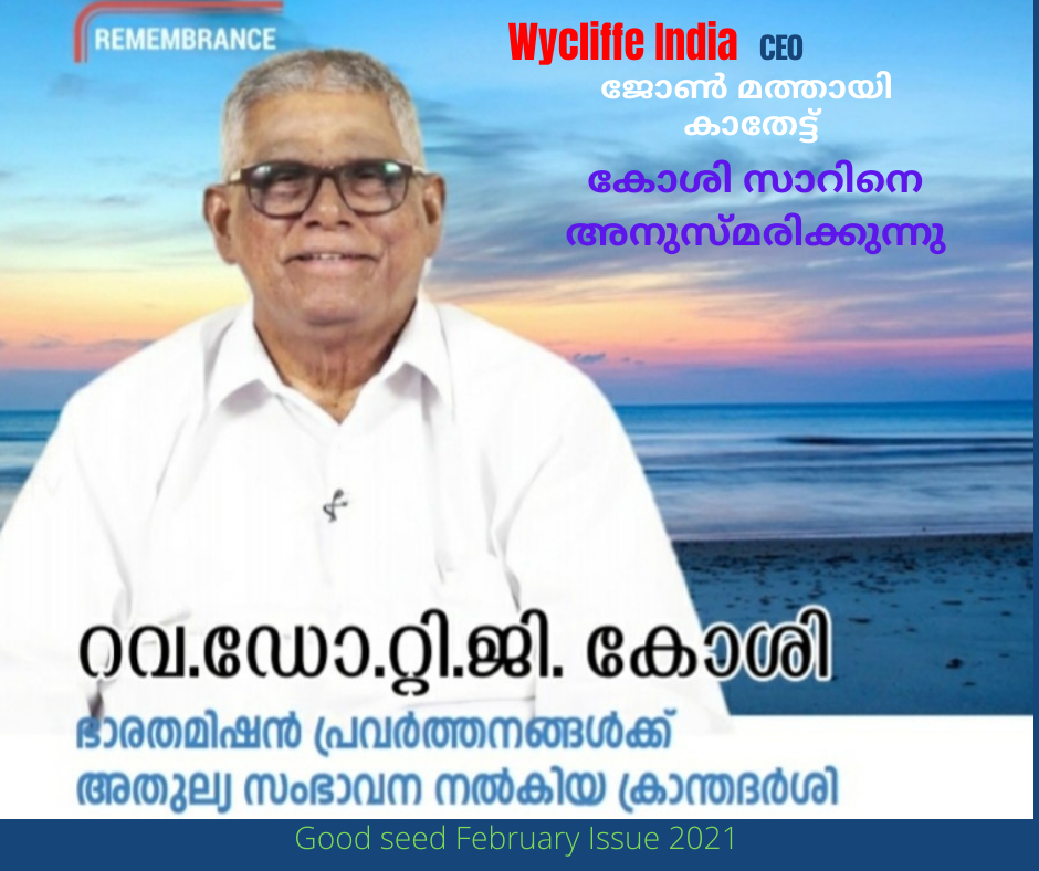 ഉത്തര ഭാരതത്തിലെ സുവിശേഷ പ്രവർത്തനങ്ങൾക്ക് ശക്തമായ അടിത്തറ പാകിയ മണക്കാല ഫെയ്ത് തിയോളജിക്കൽ സെമിനാരിയും അതിന്റെ സ്ഥാപകൻ റവ.റ്റി.ജി.കോശിയും എക്കാലവും സ്മരിക്കപ്പെടും.