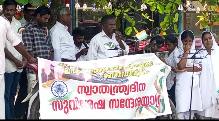 കോട്ടയം: ഇന്ത്യാ റിവൈവൽ അസംബ്ലി യുവജന വിഭാഗമായ റിവൈവൽ യൂത്ത് മൂവ്മെന്റിന്റെയും ഇവാഞ്ചലിസം മിഷൻ ബോർഡിന്റെയും സംയുക്താഭിമുഖ്യത്തിൽ ഇന്ന് സ്വാതന്ത്ര്യ ദിനത്തോടനുബന്ധിച്ച് സുവിശേഷ സന്ദേശ യാത്ര നടന്നു.