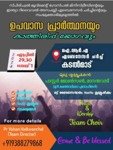 വിവരങ്ങൾക്ക് : പാസ്റ്റർ റെജി ജോൺ (+971 55 1129839)
